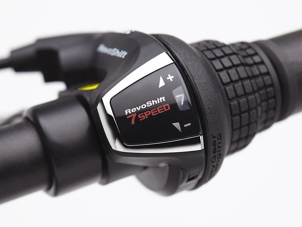 Shimano Revo twist shifter transitions through 7 gears, allowing you to climb hills with ease. Linear-pull brakes control deceleration and Bontrager 26″ tires roll smooth for a cushy ride. Color matched fenders keep you clean in all weather conditions while front and rear lights keep you safe.