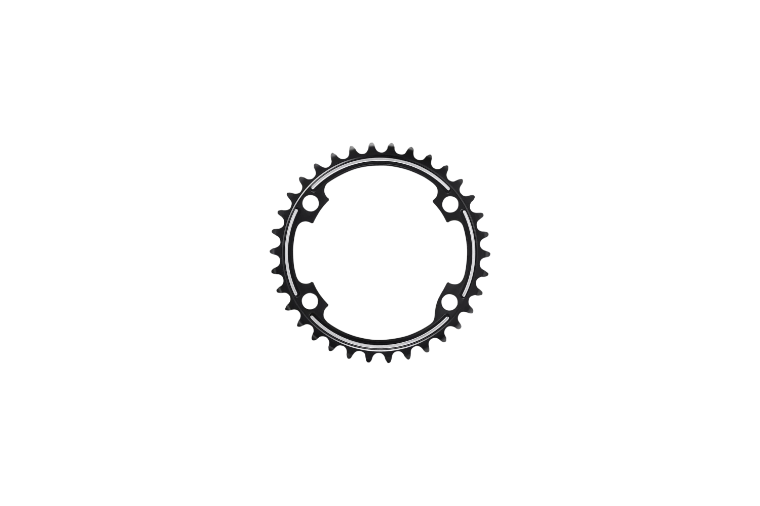 The Shimano R9100 series crankset achieves the ultimate in optimal power transfer. It does this through a reinforced chainring on its unique asymmetrical four-arm spider construction.