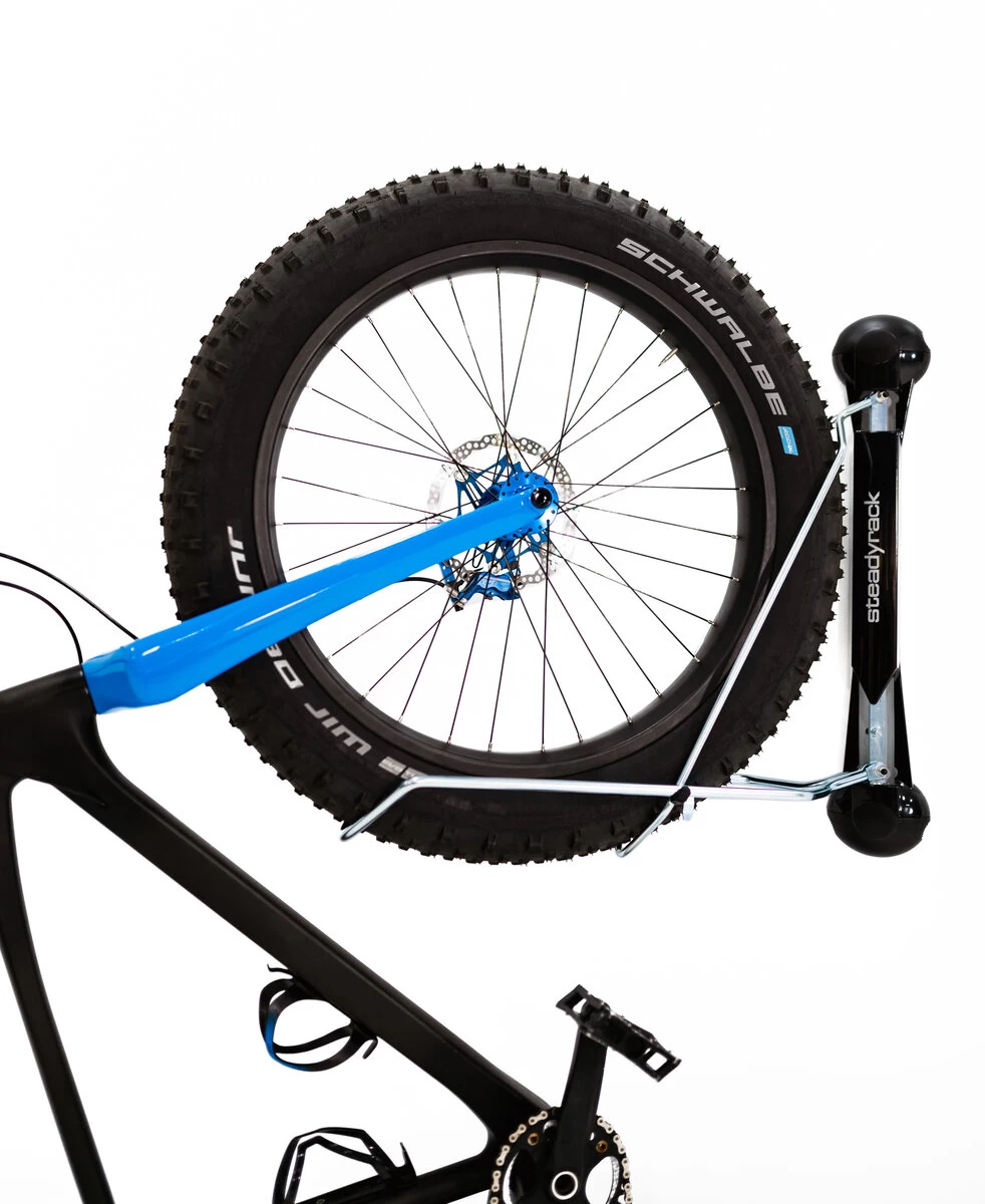 The Steadyrack Fat Bike Rack is one of the only bike racks on the market that caters specifically to bikes with tires greater than 3 inches. The Steadyrack Fat Rack can be mounted to virtually any wall and will swivel almost 160 degrees from side to side. It minimizes space without compromising safety and there is no heavy lifting required. This is a truly revolutionary way to store a lot of bikes without taking up much space. Designed for tires 2. 2″ to 5″, bikes without fenders & with a maximum weight of 77 lbs. E-bike compatible. Not for use with fenders.