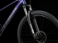 – A lightweight aluminum frame with internal routing to protect your cables and add to the bike’s sleek look, an upgraded 9-speed Shimano CUES drivetrain, a wide range of gearing so you always have the right gear for your terrain, powerful hydraulic disc brakes, and a terrain-smoothing suspension fork with a lockout.