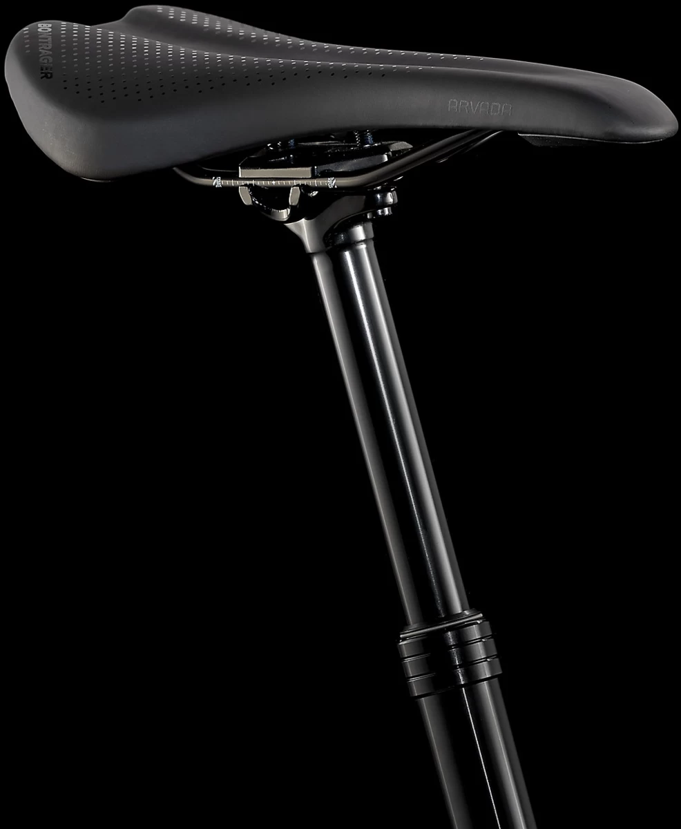 – The dropper post lets you lower your saddle on the fly so it’s out of the way on descents