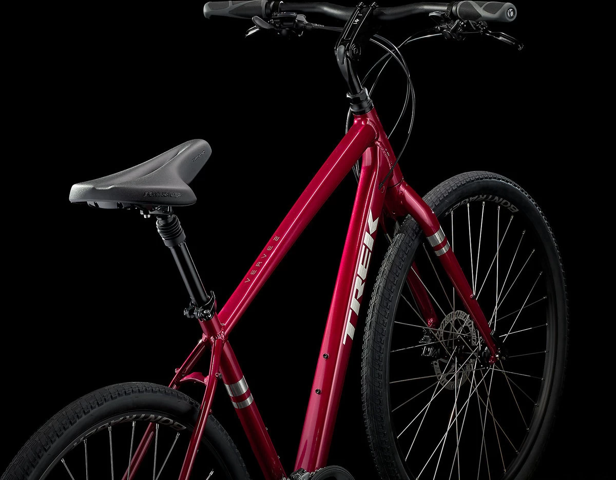 Verve 2 Disc is a hybrid bike designed for comfort and fun on commutes, cruises, and fitness rides. It has a lot of thoughtful features that make for a confident and comfortable ride, like a suspension seatpost, padded saddle, and disc brakes that perform in any weather.