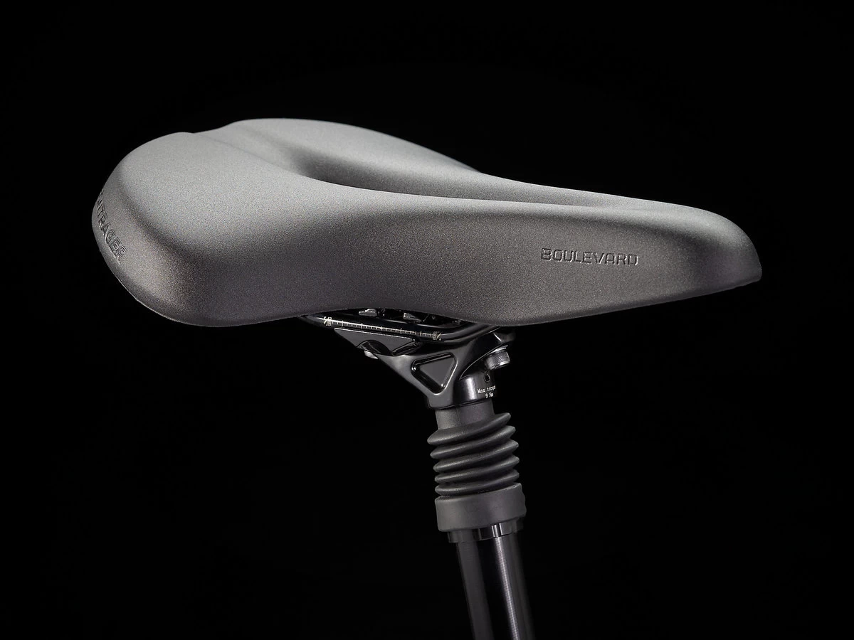 A lightweight aluminum frame with mounts for a rack and fenders, a reliable drivetrain with 24-speeds so you’ll never have to pedal too hard or too soft, powerful disc brakes, an adjustable stem, a padded saddle, wide tires for extra stability, a road-smoothing suspension seatpost, and a geometry that keeps you in a comfortable, upright riding posture.